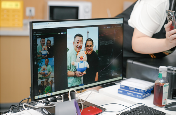 在AI合影区,董浩叔叔更是按捺不住好奇心,与猪小弟来了个“赛博”互动,相机定格下了董浩叔叔温暖慈祥的笑脸。